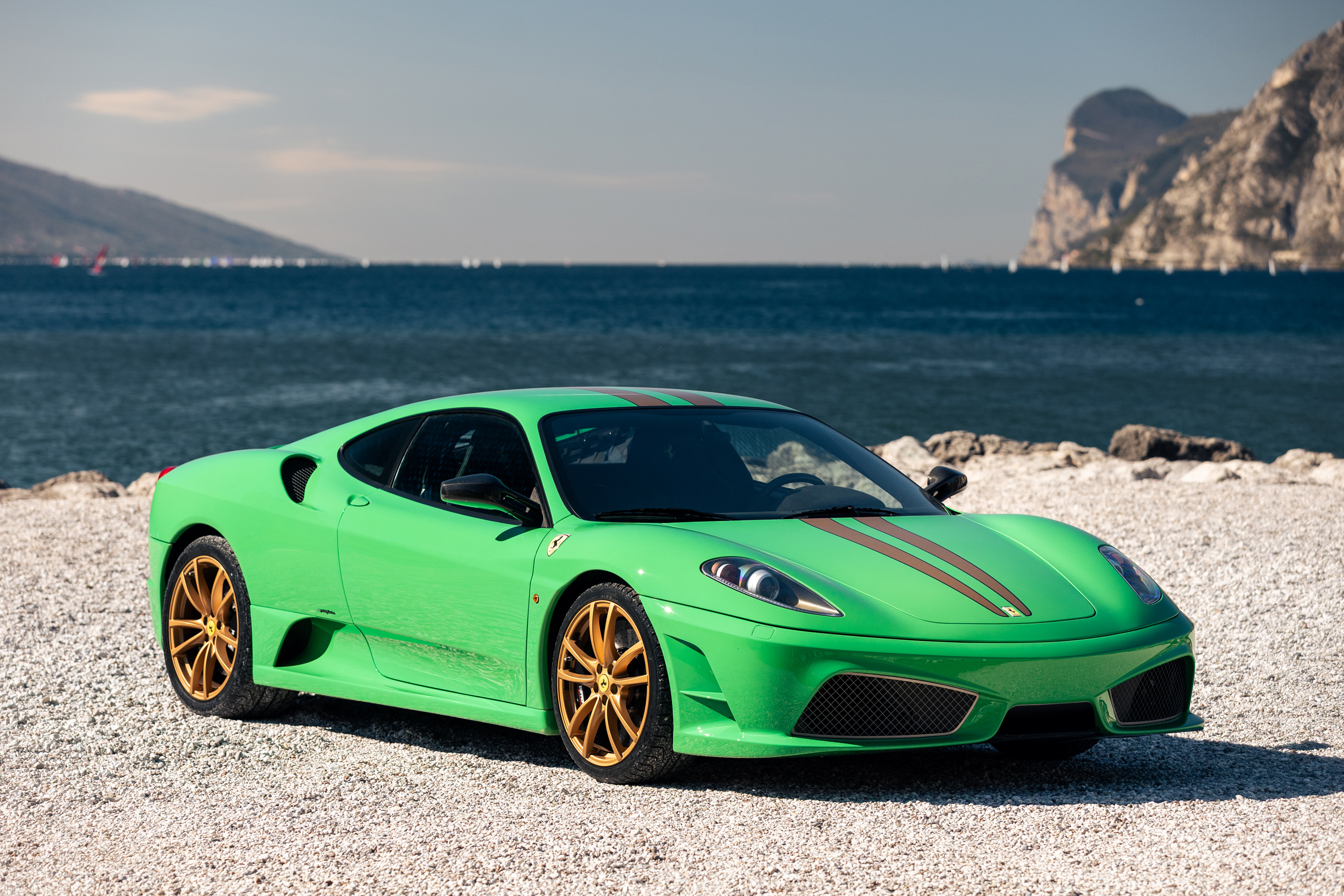 This stunning Ferrari 430 Scuderia was ordered new through Ferrari dealer, Lumani Krüger in Germany in Porsche Grün over Tessuto Nero, thought to be the only example of its type finished in this shade. The vibrant paint was paired with equally striking gold racing stripes and gold-finished 19-inch alloy wheels, making it one of the most striking Scuderia specifications ever created. This car is also highly specified with four-point harnesses, a rollover bar, carbon fibre front and rear elements, carbon entry sills, a carbon LED steering wheel trimmed in Alcantara and Verde deviated stitching throughout.